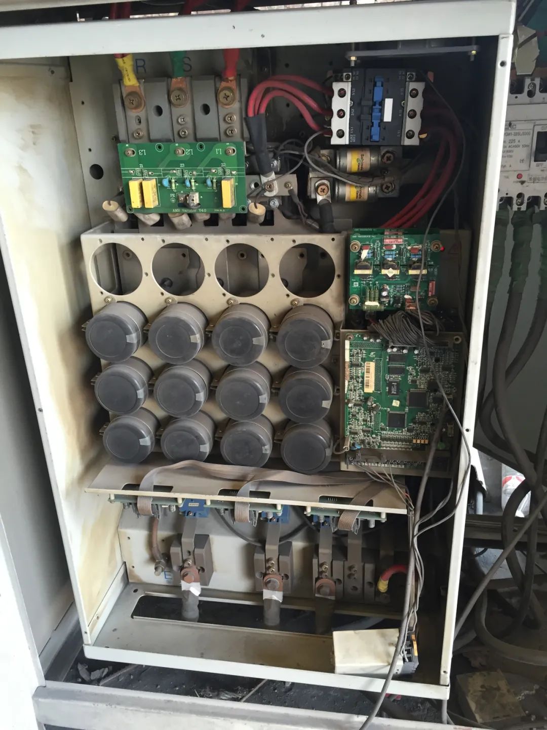 变频器的过电流跳闸又分短路故障、运行过程中跳闸和升、降速过程中跳闸等情况。1、短路故障:(1)故障特点(a)****次跳闸有可能在运行过程中发生,但如复位后再起动,则往往一升速就跳闸。(b)具有很大的冲击电流,但大多数变频器已经能够进行保护跳闸,而不会损坏。由于保护跳闸十分迅速,难以观察其电流的大小。(2)判断与处理****步,首先要判断是否短路。为了便于判断,在复位后再起动前,可在输入侧接入一个电压表,重新启动时,电位器从零开始缓慢旋动,同时,注意观察电压表。如果变频器的输出频率刚上升就立即跳闸,且电压表的指针有瞬间回“0”的迹象,则说明变频器的输出端已经短路或接地。第二步,要判断是在变频器内部短路,还是在外部短路。这时,应将变频器输出端的接线脱开,再旋动电位器,使频率上升,如仍跳闸,说明变频器内部短路;如不再跳闸,则说明是变频器外部短路,应检查从变频器到电动机之间的线路,以及电动机本身。2、轻载过电流负载很轻,却又过电流跳闸:这是变频调速所特有的现象。在V/F控制模式下,存在着一个十分突出的问题:就是在运行过程中,电动机磁路系统的不稳定。其基本原因在于:低频运行时,为了能带动较重的负载,常常需要进行转矩补偿(即提高U/f比,也叫转矩提升)。导致电动机磁路的饱和程度随负载的轻重而变化。这种由电动机磁路饱和引起的过电流跳闸,主要发生在低频、轻载的情况下。解决方法:反复调整U/f比。3、重载过电流:(1)故障现象有些生产机械在运行过程中负荷突然加重,甚至“卡住”,电动机的转速因带不动而大幅下降,电流急剧增加,过载保护来不及动作,导致过电流跳闸。(2)解决方法(a)首先了解机械本身是否有故障,如果有故障,则修理机器。(b)如果这种过载属于生产过程中经常可能出现的现象,则首先考虑能否加大电动机和负载之间的传动比?适当加大传动比,可减轻电动机轴上的阻转矩,避免出现带不动的情况。如无法加大传动比,则只有考虑增大电动机和变频器的容量了。4、升速或降速中过电流:这是由于升速或降速过快引起的,可采取的措施有如下:(1)延长升(降)速时间首先了解根据生产工艺要求是否允许延长升速或降速时间,如允许,则可延长升(降)速时间。(2)准确预臵升(降)速自处理(防失速)功能变频器对于升、降速过程中的过电流,设臵了自处理(防失速)功能。当升(降)电流超过预臵的上限电流时,将暂停升(降)速,待电流降至设定值以下时,再继续升(降)速。变频器的过载跳闸电动机能够旋转,但运行电流超过了额定值,称为过载。过载的基本反应是:电流虽然超过了额定值,但超过的幅度不大,一般也不形成较大的冲击电流1、过载的主要原因(1)机械负荷过重,负荷过重的主要特征是电动机发热,并可从显示屏上读取运行电流来发现。(2)三相电压不平衡,引起某相的运行电流过大,导致过载跳闸,其特点是电动机发热不均衡,从显示屏上读取运行电流时不一定能发现(因显示屏只显示一相电流)。(3)误动作,变频器内部的电流检测部分发生故障,检测出的电流信号偏大,导致跳闸。2、检查方法(1)检查电动机是否发热,如果电动机的温升不高,则首先应检查变频器的电子热保护功能预臵得是否合理,如变频器尚有余量,则应放宽电子热保护功能的预臵值。如果电动机的温升过高,而所出现的过载又属于正常过载,则说明是电动机的负荷过重。这时,首先应能否适当加大传动比,以减轻电动机轴上的负荷。如能够加大,则加大传动比。如果传动比无法加大,则应加大电动机的容量。(2)检查电动机侧三相电压是否平衡,如果电动机侧的三相电压不平衡,则应再检查变频器输出端的三相电压是否平衡,如也不平衡,则问题在变频器内部。如变频器输出端的电压平衡,则问题在从变频器到电动机之间的线路上,应检查所有接线端的螺钉是否都已拧紧,如果在变频器和电动机之间有接触器或其他电器,则还应检查有关电器的接线端是否都已拧紧,以及触点的接触状况是否良好等。如果电动机侧三相电压平衡,则应了解跳闸时的工作频率:如工作频率较低,又未用矢量控制(或无矢量控制),则首先降低U/f比,如果降低后仍能带动负载,则说明原来预臵的U/f比过高,励磁电流的峰值偏大,可通过降低U/f比来减小电流;如果降低后带不动负载了,则应考虑加大变频器的容量;如果变频器具有矢量控制功能,则应采用矢量控制方式。